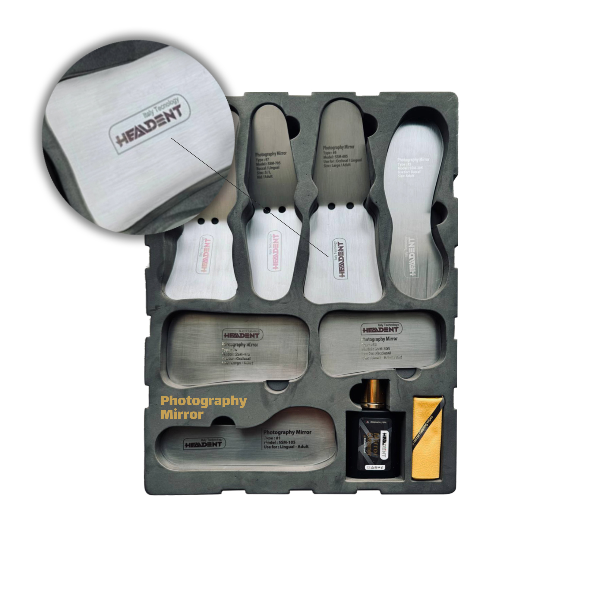 فول ست آینه فتوگرافی هیلدنت از جنس استیل ضد زنگ و قابل استریل ساخته شده است . این کیت مناسب عکاسی های داخل دهانی و اطراف آن می باشد . زوایای اکلوزال و باکال و لینگوال در سمت چپ و راست ، بالا و پایین قابل عکاسی می باشد و همچنین علاوه بر بزرگسال برای دهان اطفال نیز مناسب می باشد . در این کیت علاوه برد دفترچه راهنما ، مایع شست و شو جهت جلوگیری از بخار دهان زیاد و همچنین دستمال ضد خش نانو در،موجود می باشد .